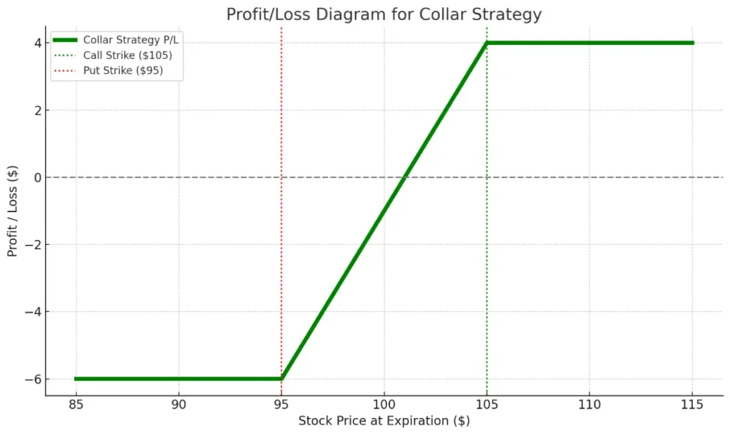 אסטרטגיית Collar (או "צווארון") היא אסטרטגיה רב-שלבית במסחר באופציות, שנועדה להגן על השקעה במניה מפני ירידות חדות – תוך שמירה על פוטנציאל רווח מוגבל. האסטרטגיה משלבת החזקה של מניה, מכירת אופציית קול מחוץ לכסף (Covered Call), ורכישת אופציית פוט מחוץ לכסף (Protective Put).