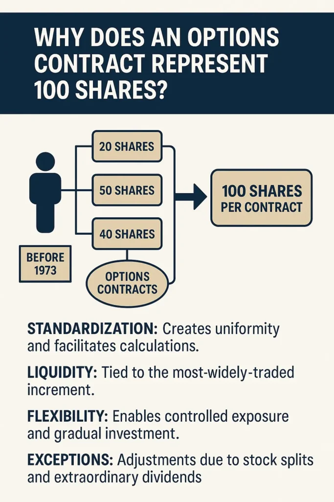 המספר 100 אולי נראה אקראי, אבל הוא תוצר של שילוב בין היגיון כלכלי, צורך בשפה אחידה ונוחות מסחרית. התקן הזה הבטיח ששוק האופציות האמריקאי יתפתח במהירות וימשוך משקיעים בכל רמות הידע וההון.