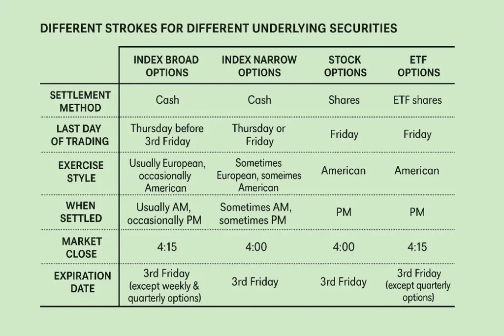 למשל, אם מימשת אופציית Call על מדד S&P 500, לא תקבל 500 מניות. במקום זאת, תבוצע התחשבנות לפי ערך המדד ביום הפקיעה.
