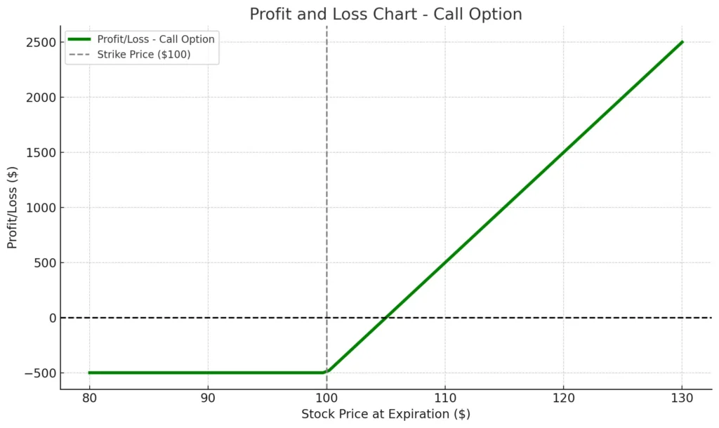 אם המניה לא עולה מעל $100, האופציה תפקע ללא ערך, וההפסד שלכם מוגבל ל-$500 (הפרמיה).
